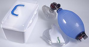 A bag valve mask, abbreviated to BVM and sometimes known by the proprietary name Ambu bag or generically as a manual resuscitator or “self-inflating bag”, is a hand-held device commonly used to provide positive pressure ventilation to patients who are not breathing or not breathing adequately.